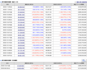 20251106 とりあえず半分くらい買い戻し SNSフォローボタン pinkをフォローする 投資日記 Twitter Facebook はてブ Pocket LINE コピー 2025.11.06 昨日はあまり調べるまもなくとりあえず売っときましたが、何事もなかったようですので買い戻ししました。 今回は日経とトピックと個別を少しバランスよく買ってみました。 上げれば買いでいこうと思います。 昨日までの推移