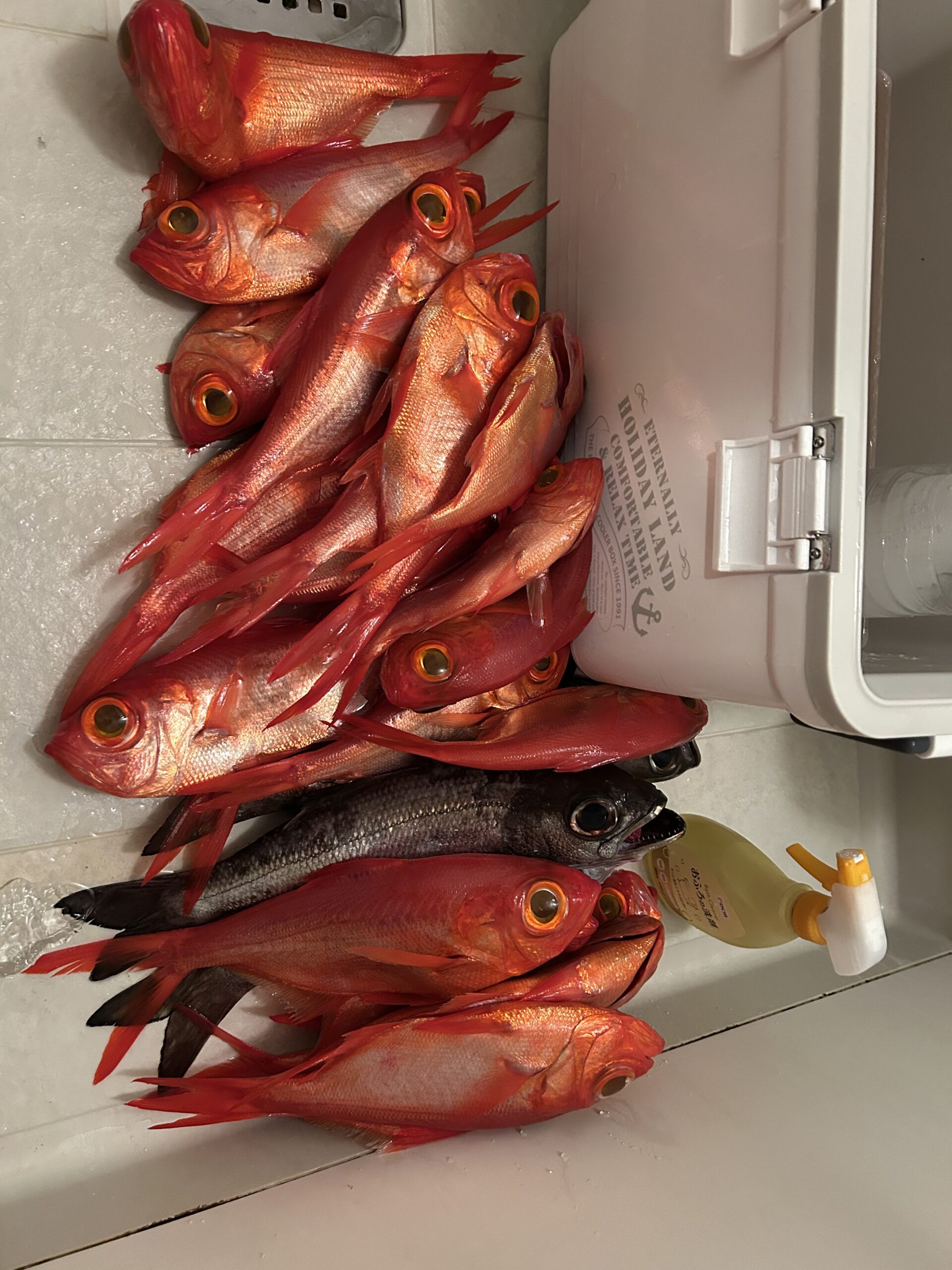 これまでの釣りと水深が全然違います。今回は大体160mくらいの深さでした。オモリも200号というほぼ鈍器みたいなやつを使いました。
