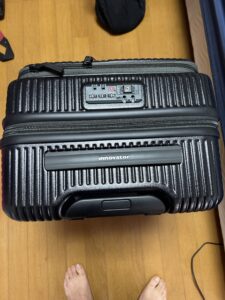 これは思い出のあるスーツケースで昔、株を始めた時に「東京デリカ」っていうバックとかそういうののセレクトショップの会社があってそこの株主優待でもらったやつです。今の株主優待でここまで良いものをもらえる会社はないような気がします。これでいろんな国に行きましたけど今回でこれは釣り専用にする事にしました。
